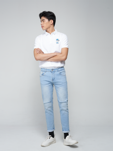 Cách phối: Chọn áo polo màu trung tính (trắng, đen, xám) kết hợp quần jean xanh hoặc đen.