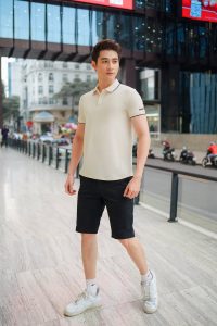 Cách phối: Áo polo màu nổi (xanh navy, cam, xanh lá) đi cùng quần short chino hoặc jean ngắn.