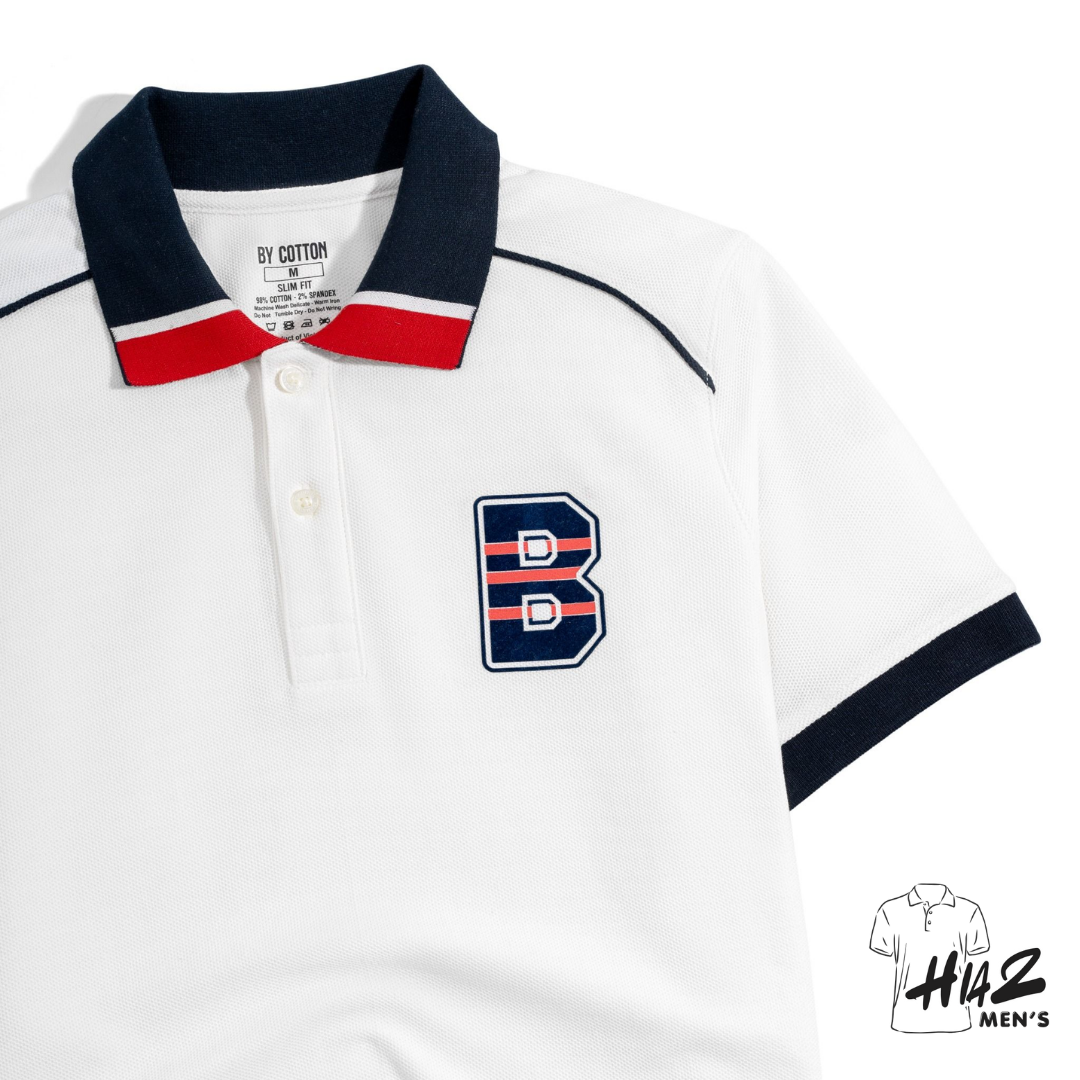 Áo Thun Polo Cool Pique Trắng Bo Cổ Xanh In B